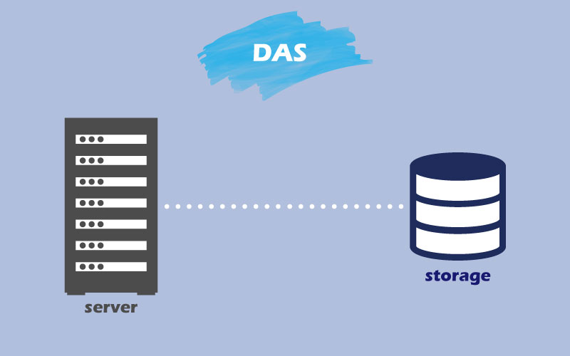 - ストレージデバイスとサーバを専用のコントローラとケーブルで直接接続して使用します。ネットワークを介さない方法で、高度な技術を必要としないため、導入・運用のハードルが低いのがDASの特徴です。DAS方式で接続するストレージそのものを「DAS」と呼ぶ場合もあります。コストの面でも安価に抑えられるため、比較的小規模なシステムのストレージに適しています。デメリットとしては、アクセスが接続しているサーバに限られるため、他のサーバ内のデータにアクセスする場合、面倒なやりとりが必要になることや、サーバやストレージが増えることで、その管理に時間を取られてしまうことなどがあります。 DASについての説明はこちら